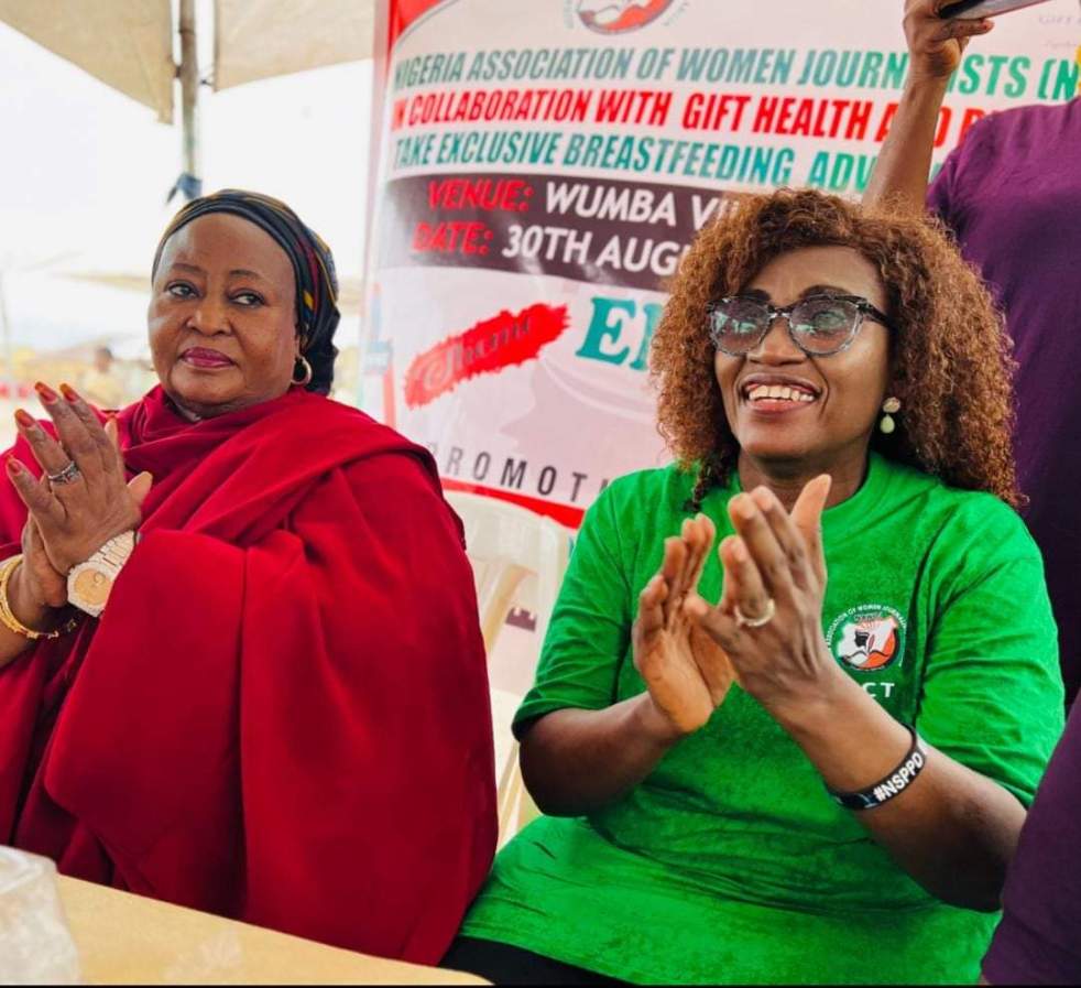 By Ada Nkong Comrade Aisha Ibrahim National president NAWOJ and Comrade Bassey Ikpang FCT Chairperson NAWOJ In a bid to encourage more women to key into the healthy practice of exclusive breast feeding, the Nigeria Association of Women Journalists (NAWOJ) in partnership with Gift Health and Development Initiative Friday held an outreach at Wumba in… Continue reading Exclusive Breastfeeding: NAWOJ Partners Gift Health and Development Initiative, Takes Advocacy to Wumba