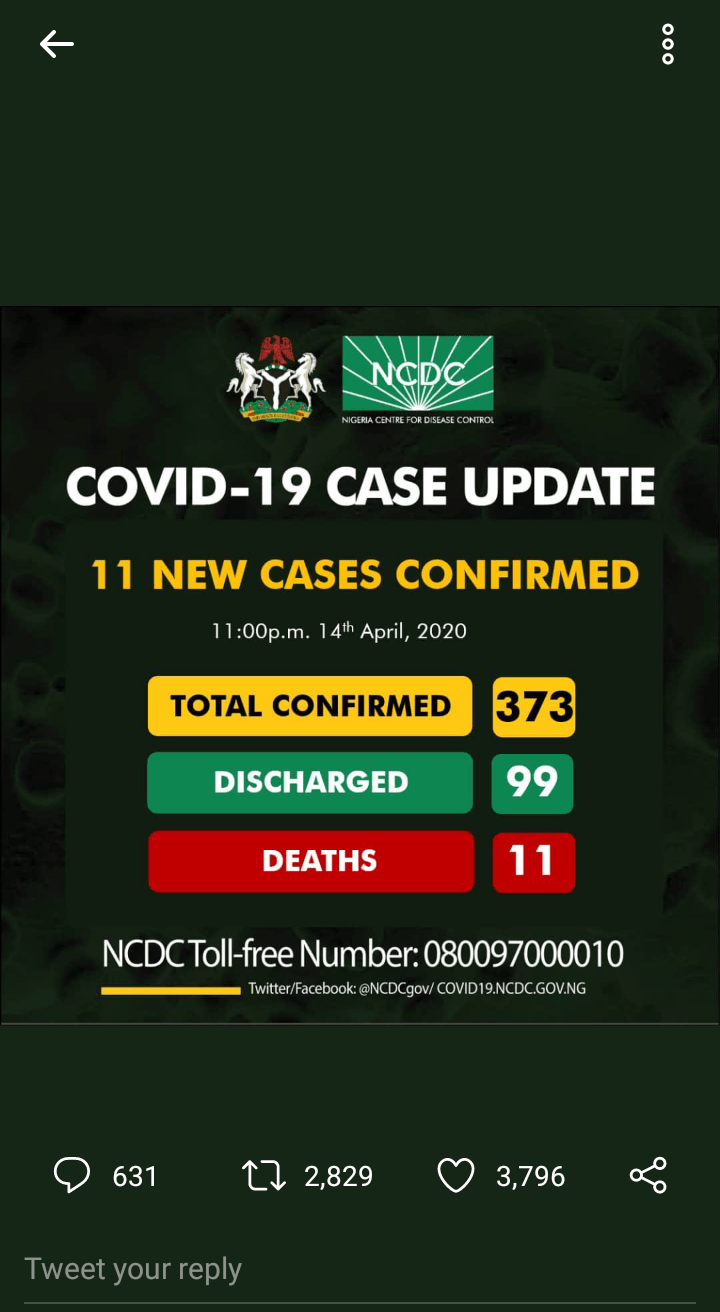 Two hours after the NCDC announced 29 new cases of Covid-19 ,Tuesday evening, 11 more cases were announced in Lagos state. That brings the total number of cases as at. Tuesday night to 373. Adding this to the 19 earlier announced, 30 cases were reported in just one day. Though Lagos state has put up… Continue reading 30 Covid-19 Cases in One day _Ada Nkong