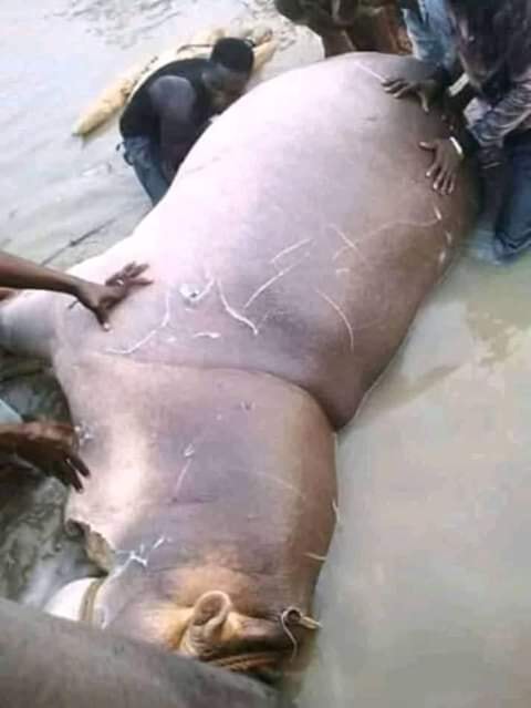 Reports reaching us say a brave fisherman in saminaji in Kok/ besse local government area of kebbi State has killed a notorious hippotamus that has been terrorising people in the area .The hippopotamus had allegedly attacked people area in which it sunk about four canoes fully loaded with passengers and destroyed their farm produce.