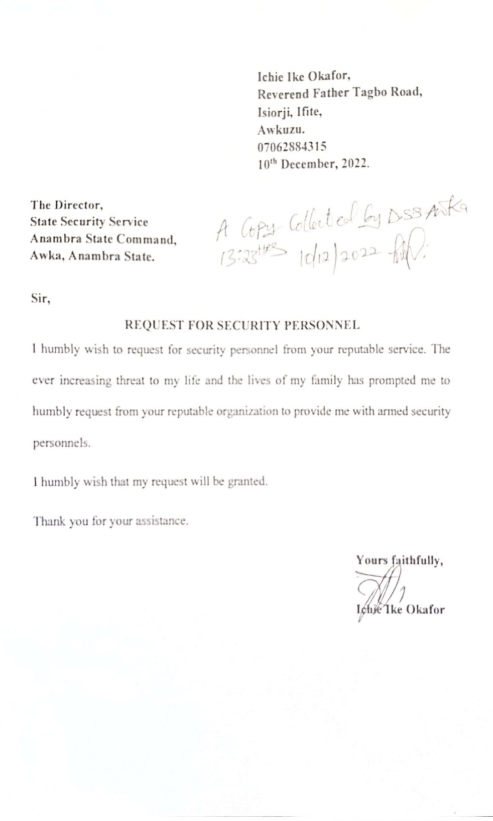 Ikechukwu Okafor Raises Alarm Over Threat to Life and Property, Calls for Urgent Action_ Callistus Ibekwe