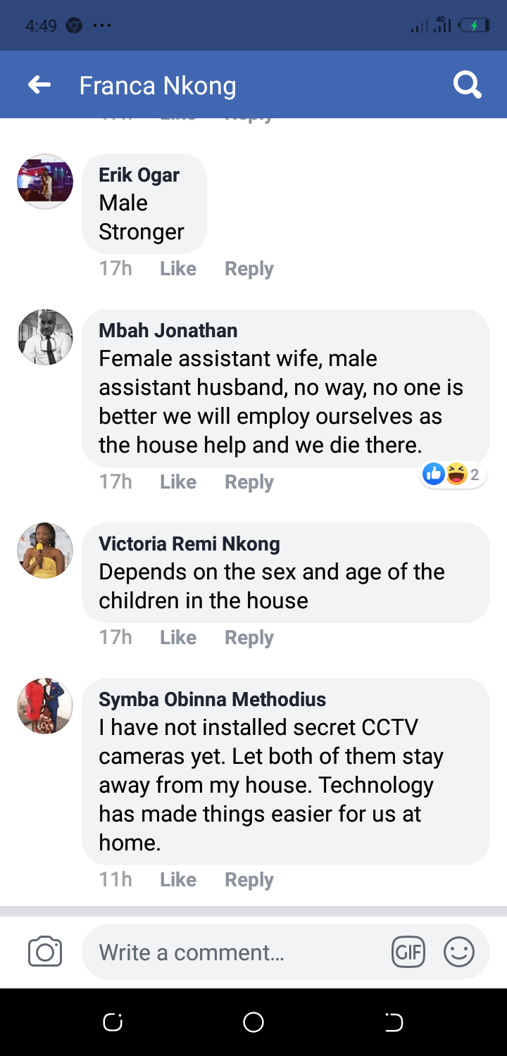 DOMESTIC HELPS:MALE OR FEMALE?Ada Nkong