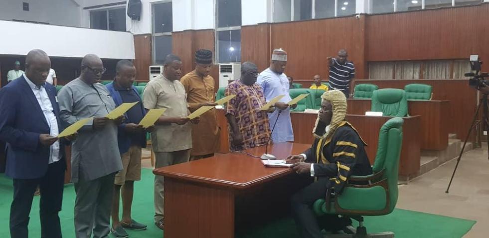 In an early morning ceremony, Edo's state house of assembly has sworn in Frank Ekiye as Speaker along with 8 others. Details later