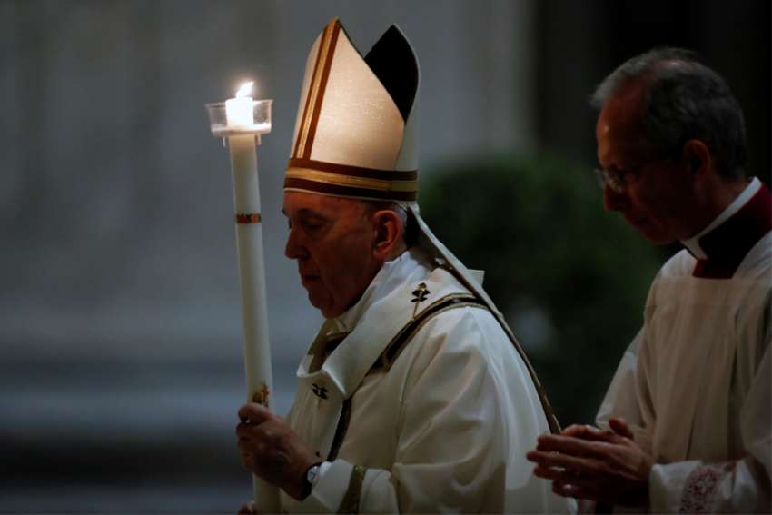 Pope Francis carries a candle in procession as he arrives to celebrate the Easter Vigil in St. Peter's Basilica at the Vatican April 20, 2019. (CNS photo/Paul Haring) See POPE-EASTER-VIGIL April 20, 2019. After the Sabbathโ (Mt 28:1), the women went to the tomb. This is how the Gospel of this holy Vigil began: with… Continue reading Pope Francis Easter Vigil 2020 Homily _Ada Nkong