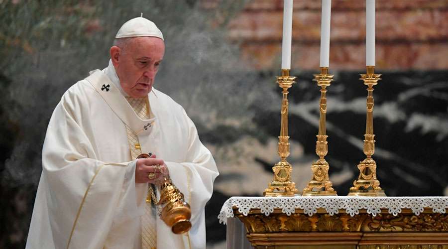 Pope Francis prays as he celebrates the Mass of the Lord's Supper April 9, 2020, in St. Peter's Basilica at the Vatican. (CNS photo/Vatican Media via Reuters) See POPE-HOLY-THURSDAY April 9, 2020. The Eucharist. Service. Anointing. The reality we live today in this liturgy is the Lord who wants to remain with us in the… Continue reading Full Text of Pope Francis Sermon on Holy Thursday _Ada Nkong