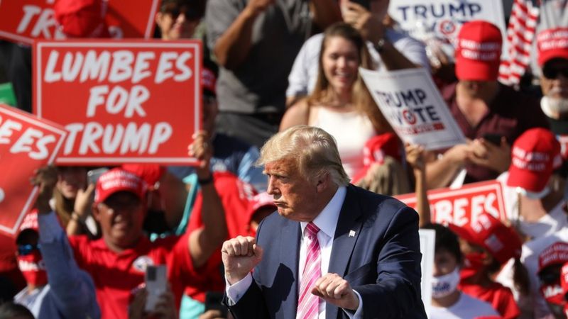 President Donald Trump has conducted a three-state campaign blitz after voting early in Florida. He hopped between rallies in North Carolina, Ohio and Wisconsin on Saturday as he sought to make up ground against his Democratic challenger Joe Biden. Mr Biden, who holds a steady lead in national polls, campaigned in Pennsylvania, another key state.… Continue reading US Election 2020: Trump Hits 3 States Campaign Trail After Casting Early Vote_Ada Nkong
