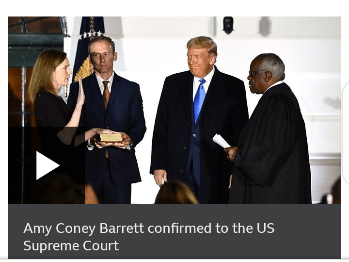The US Senate has confirmed Judge Amy Coney Barrett to the Supreme Court in a victory for President Donald Trump a week before the presidential election. Mr Trump's fellow Republicans voted 52-48 to approve the judge, overcoming the unified opposition of Democrats. Her appointment seals for the foreseeable future a 6-3 conservative majority on the… Continue reading Judge Amy Barrett Confirmed to Supreme Court_Ada Nkong